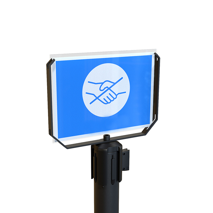 Bracket for top sign, attachment for posts in black, Top sign version can be used with a matching acrylic poster pocket.